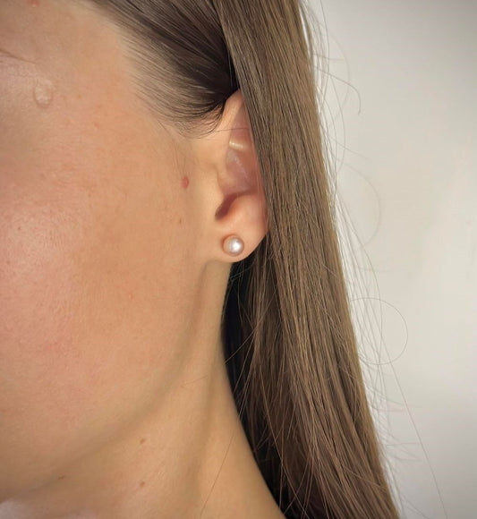 tikri balti perlai ¦ sidabriniai auskarai dengti rodžiu
