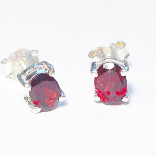 Sidabriniai auskarai su granato akmeniu ovalūs