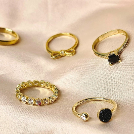 Sidabrinis auksuotas reguliuojamo dydžio žiedas su juodais cirkoniais