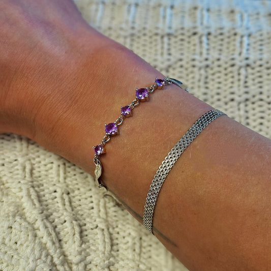 IšparduotaSidabrinė rodžiuota apyrankė su cirkoniais