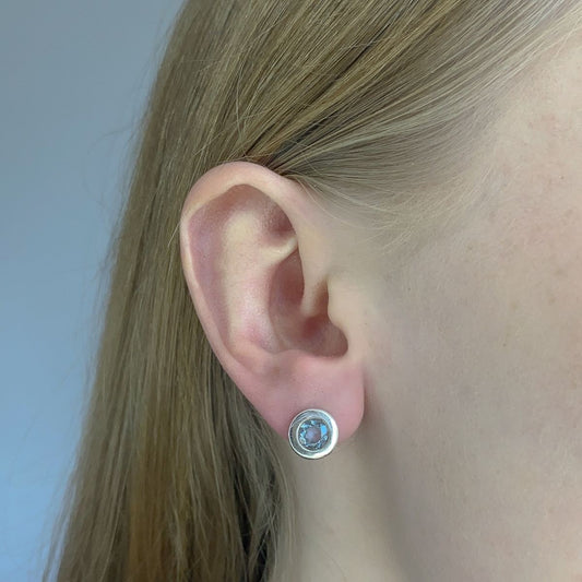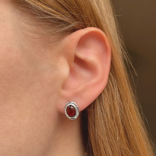 Sidabriniai apvalūs auskarai su granato akmeniu
