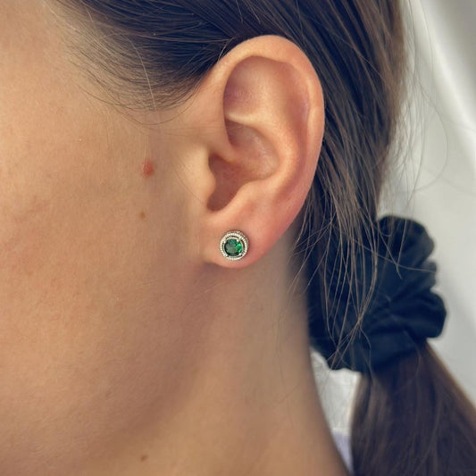 Sidabriniai rodžiuoti auskarai su žaliu cirkoniu