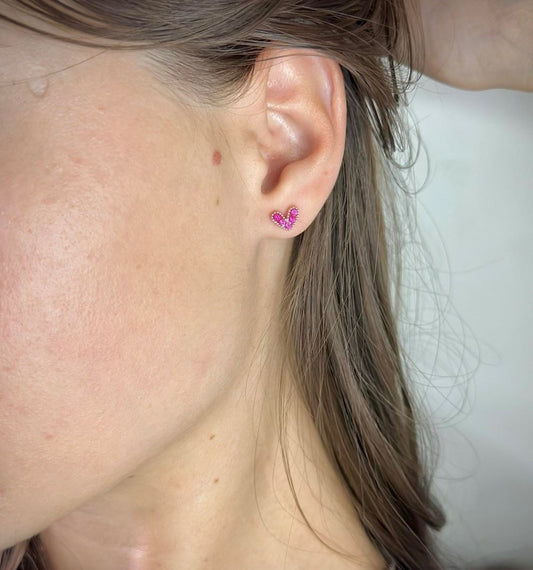 Sidabrinės paauksuotos širdutės su rožiniu cirkoniu