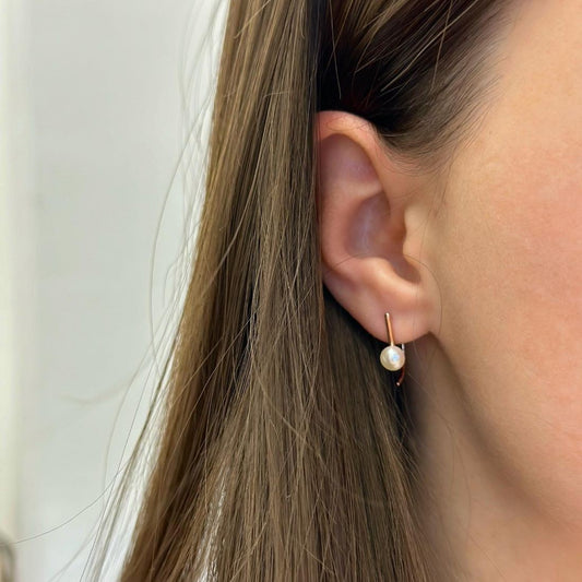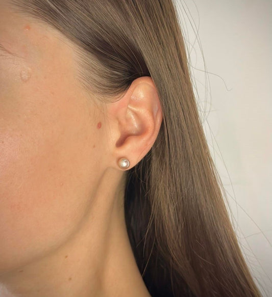 Sidabriniai paauksuoti auskariukai su tikru perlu