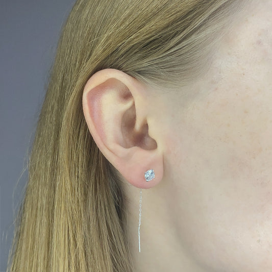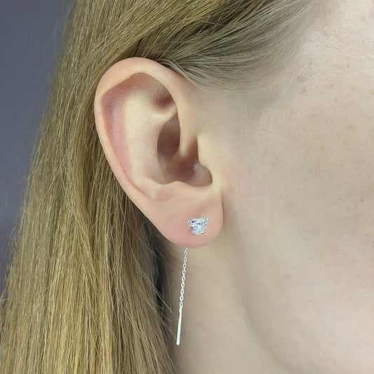 Sidabriniai kabantys auskarai su grandinėle ir cirkoniu