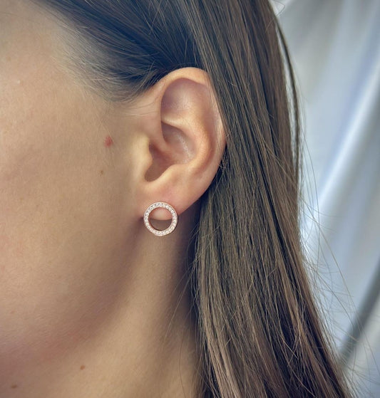 Sidabriniai rodžiuoti apvalūs auskarai su cirkoniu