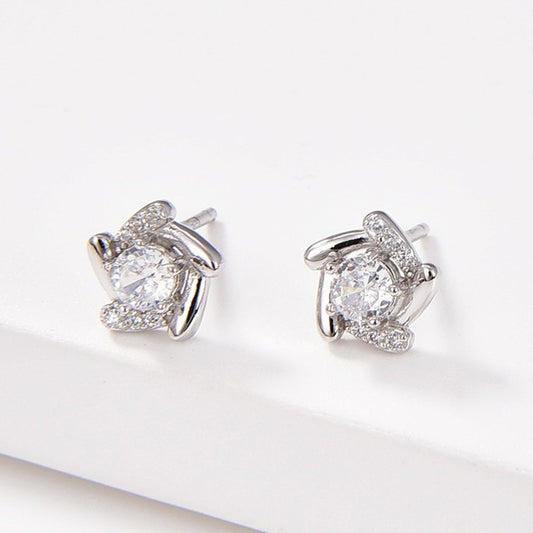 Sidabriniai užsukami auskarai su baltu cirkoniu