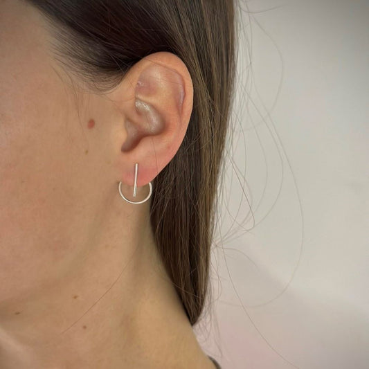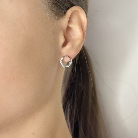 Sidabriniai rodžiuoti apvalūs auskarai su cirkoniais