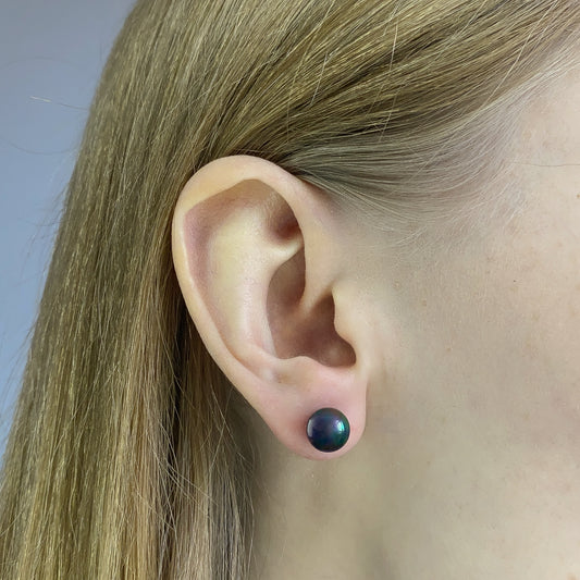 Sidabriniai rodžiuoti auskarai su tamsiuoju perlu