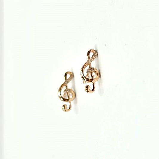 Sidabriniai paauksuoti auskarai "Smuiko raktas" su cirkoniu