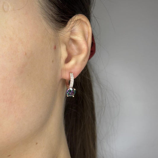 Sidabriniai rodžiuoti angl. užsegimu auskarai su spalvotu cirkoniu