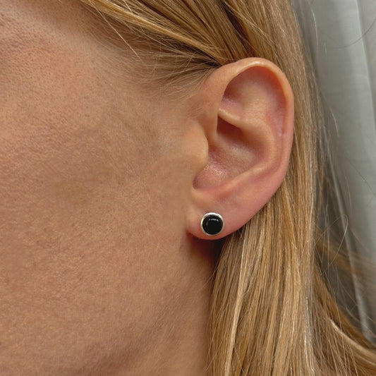 Sidabriniai apvalūs auskarai su oniksu