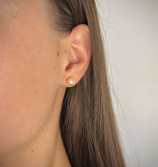 tikri persiko spalvos perlai ¦ sidabriniai auskarai dengti auksu