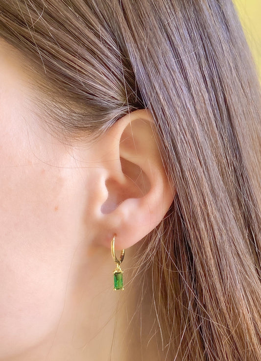 Sidabriniai auksuoti auskarai su žaliu cirkoniu