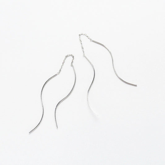 Sidabriniai rodžiuoti kabantys auskarai su grandinėle
