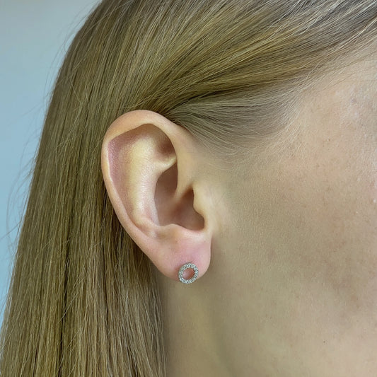 Sidabriniai rodžiuoti apvalūs auskarai su cirkoniais