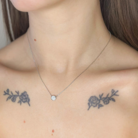 Sidabrinis rodžiuotas apvalus pakabukas su cirkoniu ir grandinėle