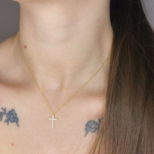 Sidabrinis auksuotas kryželis su cirkoniais ir grandinėle