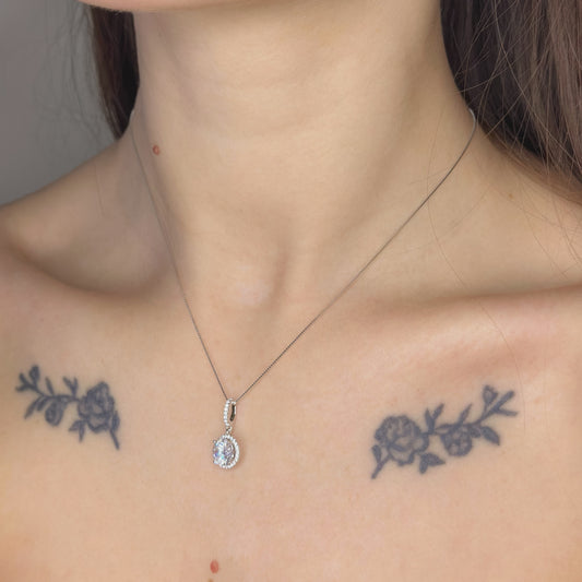 Sidabrinis rodžiuotas cirkonio pakabukas su grandinėle