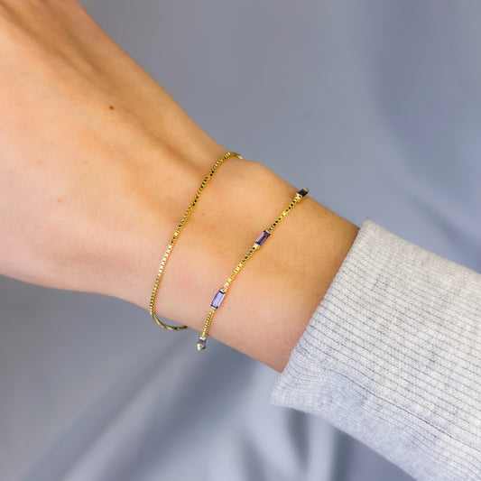 Sidabrinė auksuota dviejų gijų apyrankė su violetiniu cirkoniu