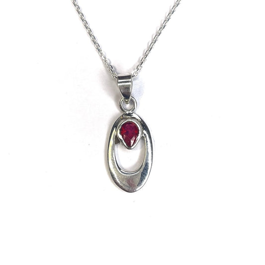 Sidabrinis pakabukas su granato akmeniu ir grandinėle