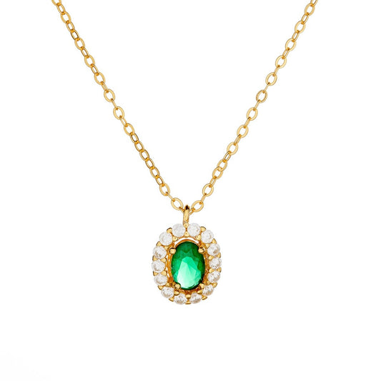 Sidabrinis auksuotas pakabukas su žaliu cirkoniu ir grandinėle