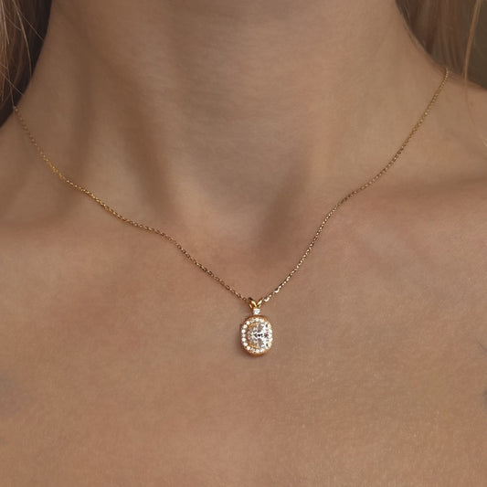 Auksuotas sidabrinis ovalus pakabukas su cirkoniu ir grandinėle