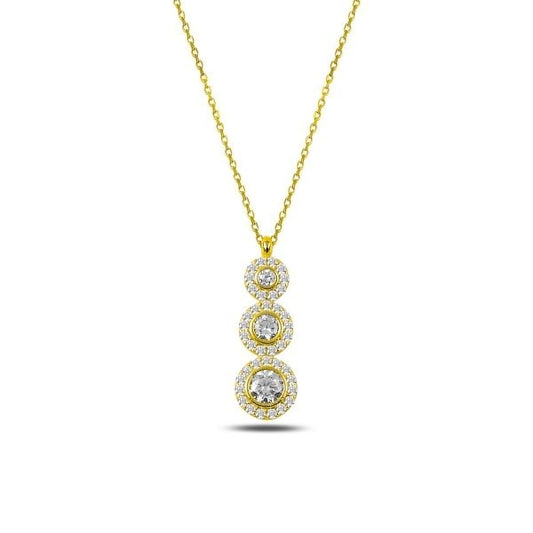 Sidabrinis auksuotas apvalus pakabukas su cirkoniu ir grandinėle