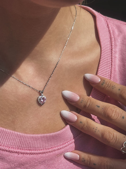 Sidabrinė rodžiuota širdelė su grandinėle ir rožiniu cirkoniu