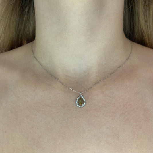 Auksuotas sidabrinis lašo formos pakabukas su cirkoniu ir grandinėle
