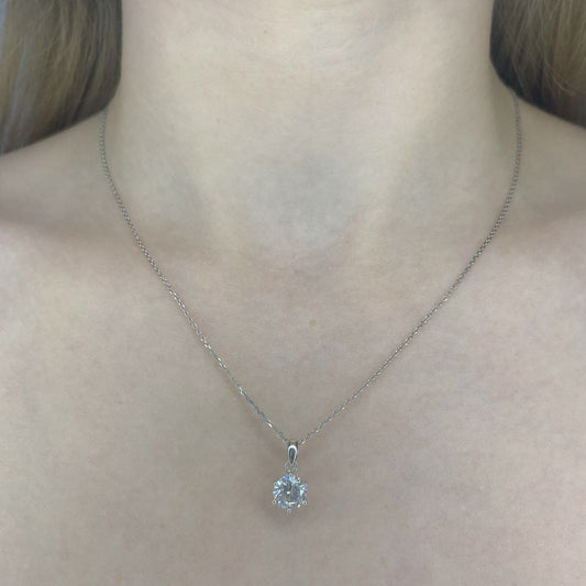 Sidabrinis rodžiuotas pakabukas su apvaliu cirkoniu ir grandinėle