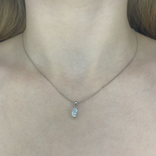 Sidabrinis rodžiuotas pakabukas su ovaliu cirkoniu ir grandinėle