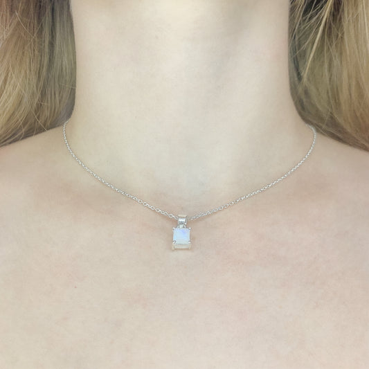 Sidabrinis pakabukas su mėnulio akmeniu ir grandinėle