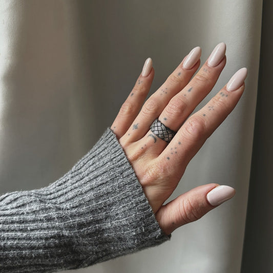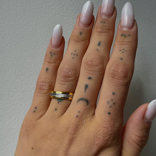 Sidabrinis rodžiuotas 8 mm žiedas su juostelėmis