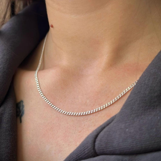 3,7 - 5.9 g sidabrinė rodžiuota 2 mm pločio grandinėlė "Curb"