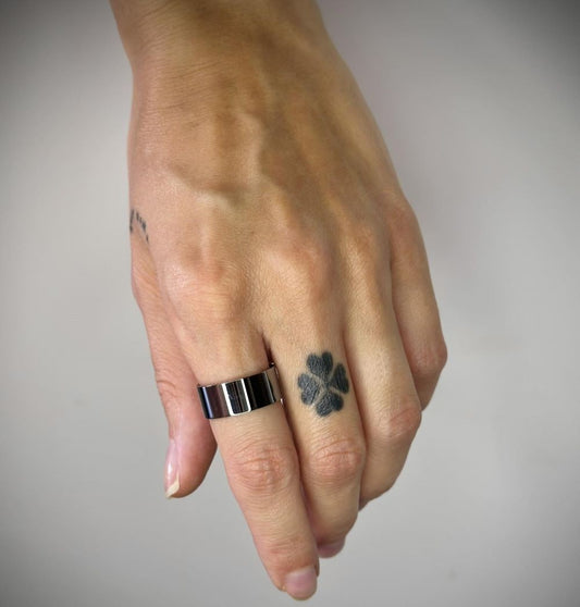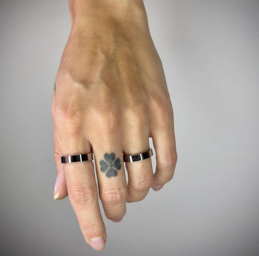 Platus 8mm sidabrinis žiedas dengtas juodu rodžiu