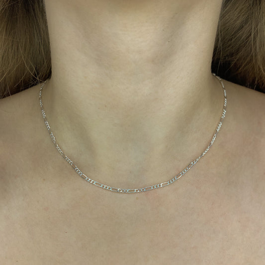 3,4 - 5,8 g sidabrinė rodžiuota 2,5 mm pločio grandinėlė "Figaro"