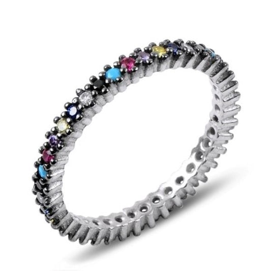 2mm sidabrinis žiedas su spalvotu cirkoniu