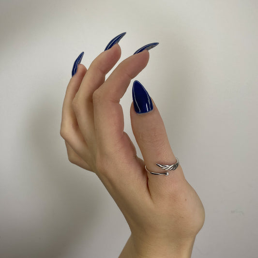 Sidabrinis rodžiuotas reguliuojamo dydžio žiedas „Persipynimas“