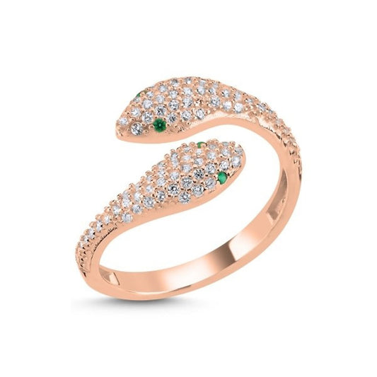 Sidabrinis rodžiuotas reg. dydžio žiedas gyvatė su cirkoniais