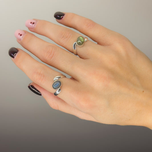 Sidabrinis žiedas su ovaliu labradorito akmeniu