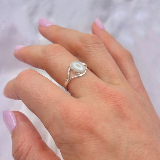 Sidabrinis žiedas su apvaliu mėnulio akmeniu