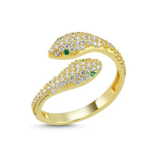 Sidabrinis paauksuotas reg. dydžio žiedas gyvatė su cirkoniais