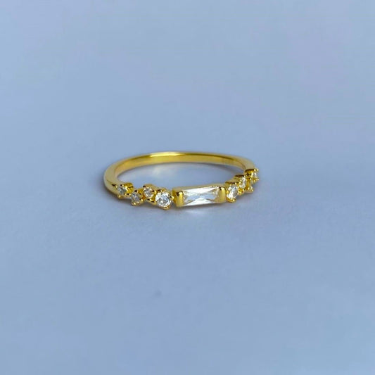 Sidabrinis auksuotas žiedas su pailgu cirkoniu