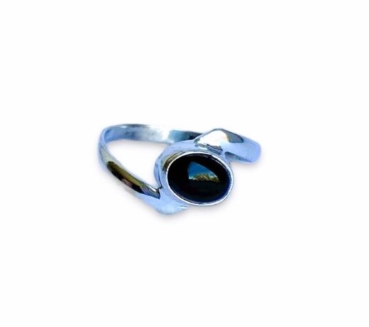 Sidabrinis žiedas su apvaliu onikso akmeniu