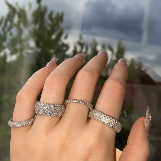 Sidabrinis rodžiuotas žiedas su 5 eilėmis cirkonių