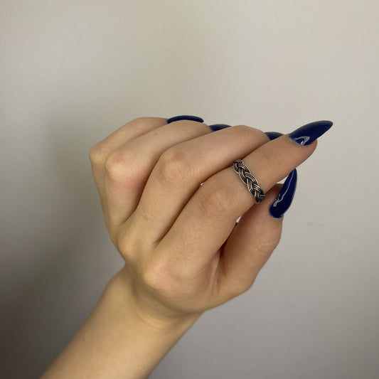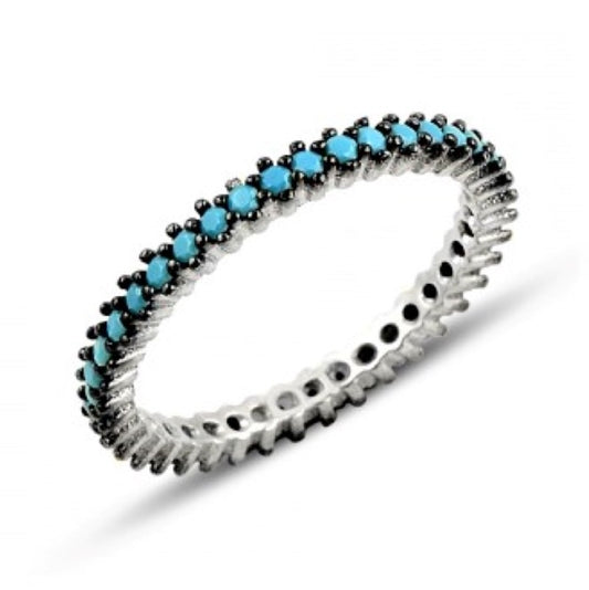 Sidabrinis 1mm žiedelis su turkio spalvos cirkoniu