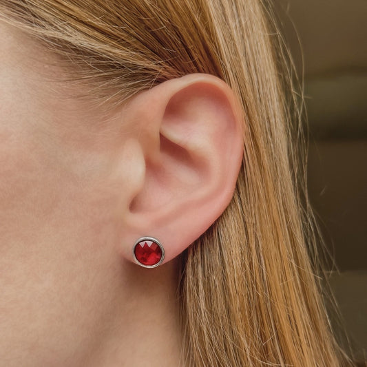 Sidabriniai apvalūs auskarai su labradorito akmeniu
