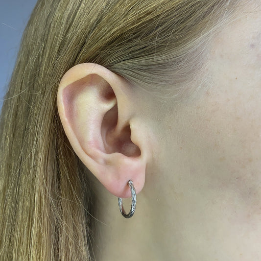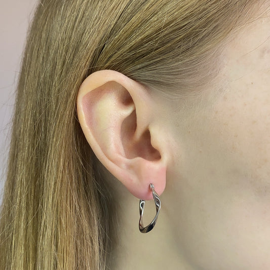 Sterling Silver Rhodium Plated Twisted Hoops