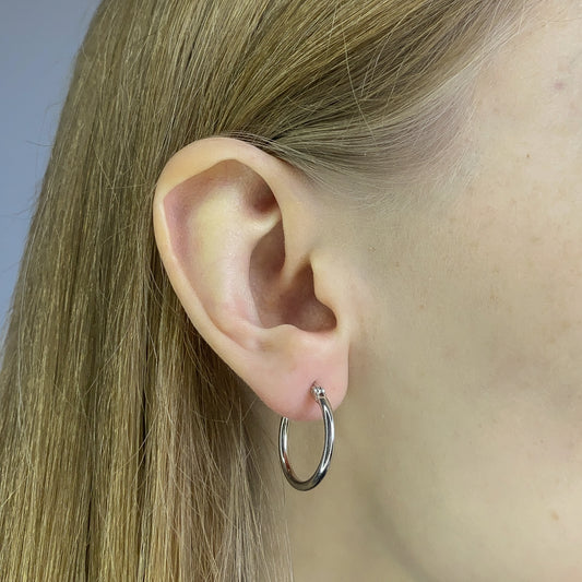Sterling Silver Rhodium Plated 20 mm Hoops